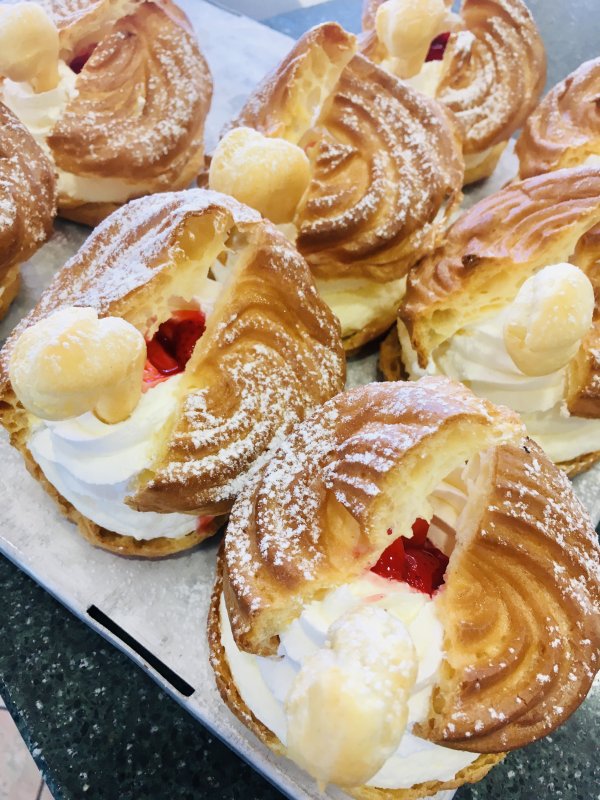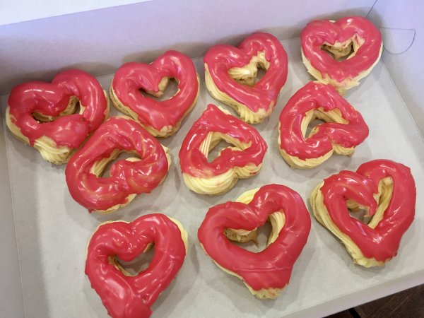 ZÁKUSEK K VYZVEDNUTÍ POUZE 12.2-14.2.2026 Srdíčko z odpalovaného těsta plněné pudinkovo-máslovým krémem s nádechem rumového aroma. Zdobené fondánem. (1,3,7)