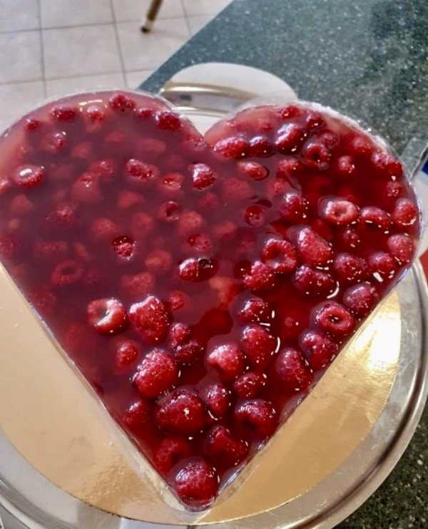 ZÁKUSEK K VYZVEDNUTÍ POUZE 12.2.-14.2.2026 Světlý korpus s jogurtovým krémem zdobený malinami a ibiškovým agarem. Nápis na dort v ceně: napište do poznámky text max. 10 znaků (1,3,7)