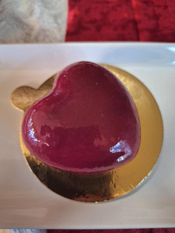Možnost objednat od12.2-14.2.2026 Zákusek ve tvaru srdce tvořený vláčným korpusem a jemným krémem s višnemi.Zdobený lahodnou šlehačkou a ovocem Chuť je vyvážená, s jasnou ovocnou intenzitou a bez přehnané sladkosti